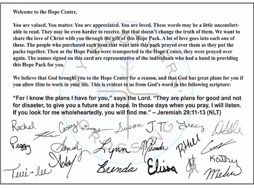 It was an overwhelming success at the Danville Hope Center. The other four centers in the region were polled to gauge their interest in receiving what would be relabeled as "Hope Packs". Now every person who enters any of the six Hope Centers (four male, two women) are given a Hope Pack upon arrival.